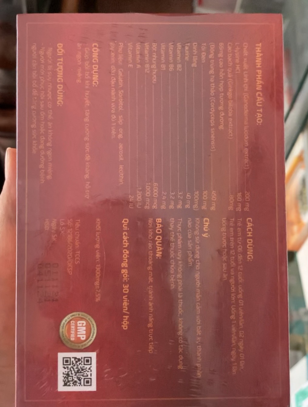 Mỗi viên viên nang cứng chứa 100% bột quả thể đông trùng hạ thảo khô 150 mg.