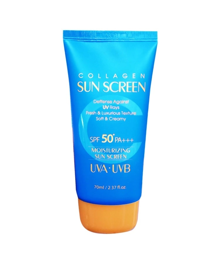 - Kem chống nắng 3w Clinic Collagen Sun Screen SPF 50+ PA+++ với thành phần chính từ Collagen, ngoài khả năng chống nắng tối ưu, sản phẩm còn giúp làm trắng da, ngăn ngừa lão hóa bổ sung collagen cho da.