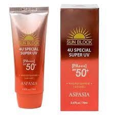 Kem chống nắng Aspasia 4U Special Super UV Sun Block là dòng sản phẩm đa năng không chỉ chống nắng, bảo vệ da khỏi tác hại của tia UV mà còn làm dịu và thư giãn làn da, cung cấp độ ẩm, nuôi dưỡng da mềm mịn, sáng khỏe.