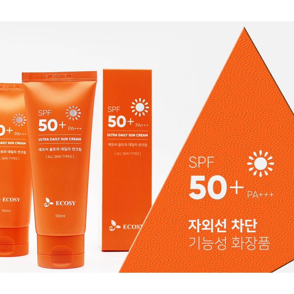 Kem chống nắng Ecosy Ultra Daily Sun Cream SPF 50 100ml với chỉ số chống nắng SPF 50, PA ++++ bảo vệ da tối ưu, tránh khỏi các tình trạng cháy nắng, đen sạm, tàn nhang hay thậm chí ung thư da do tia UVA, UVB gây ra. Sản phẩm chứa thành phần được chiết xuất từ thảo mộc thiên nhiên, giúp chống nắng bảo vệ da mà còn nuôi dưỡng và chăm sóc da.